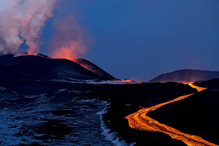 Búcsúzóul álljon itt ez a remek felvétel, melyen a Tolbachik lávafolyása és a háttérben az izzó Kluychi látható.